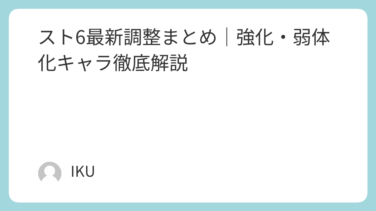 この記事では、今回のスト6最新調整について強化・弱体化キャラの特徴から今後の環境予想までを分かりやすく整理しているので、ざっくり全体像を知りたい人はぜひ参考にしてみてください。