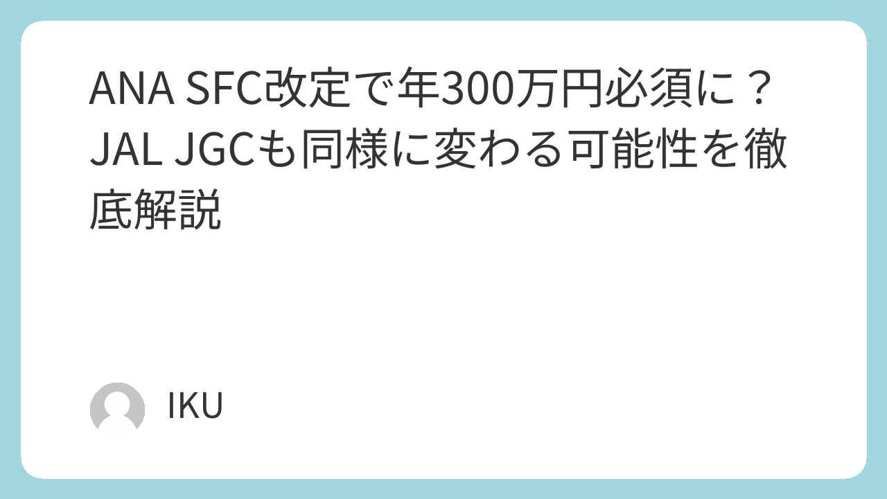 ANAのSFC制度が大きく変わるというニュースを見て、これまで当たり前だと思っていた特典が急に遠く感じてしまった人も多いのではないでしょうか、特に年間300万円という条件はインパクトが強く、今後も同じような流れが続くのか気になるところです。